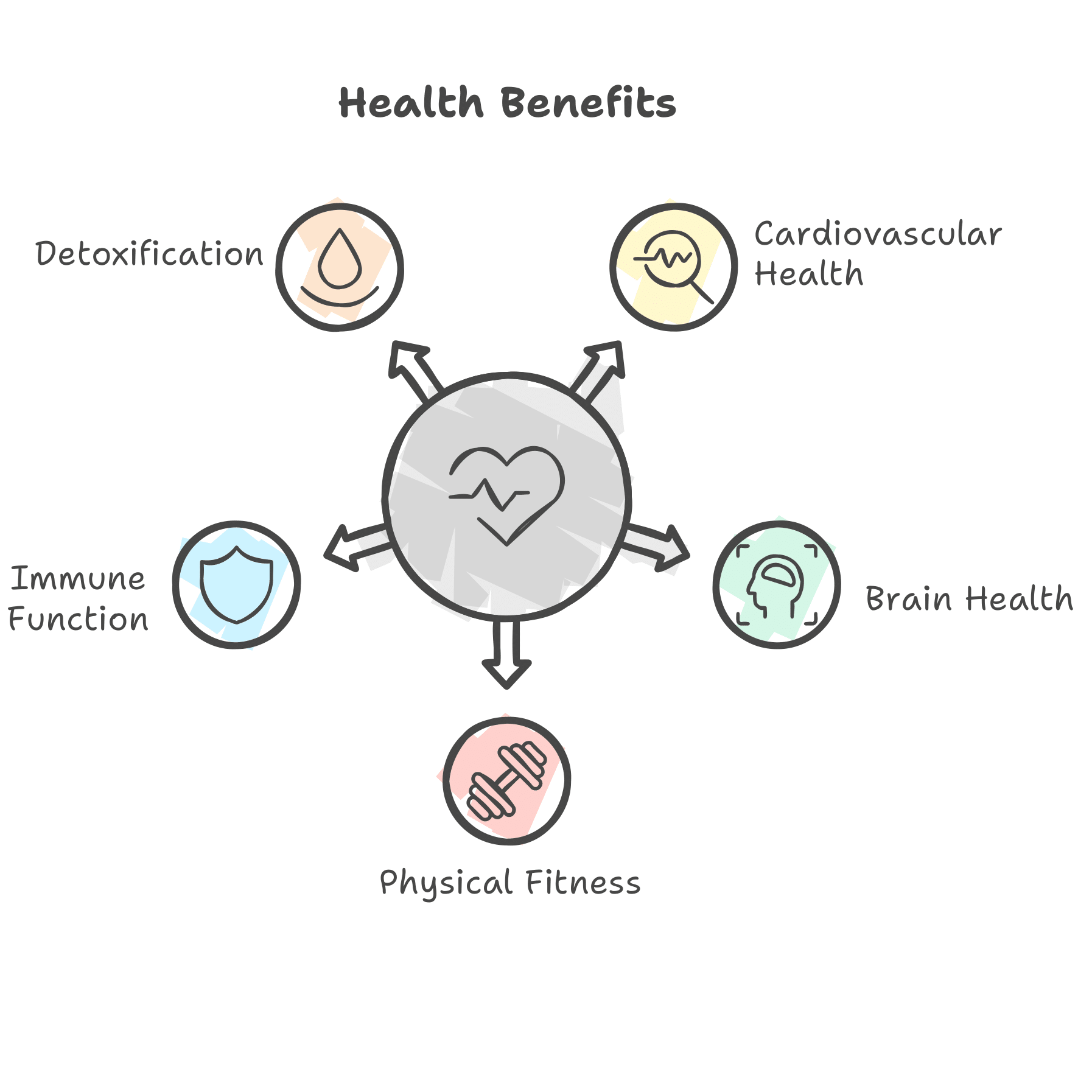 Sauna use has been shown to improve immune function by increasing the production of white blood cells and heat shock proteins, which protect cells from damage. It can even lower your risk of respiratory infections like pneumonia. - Detoxification
